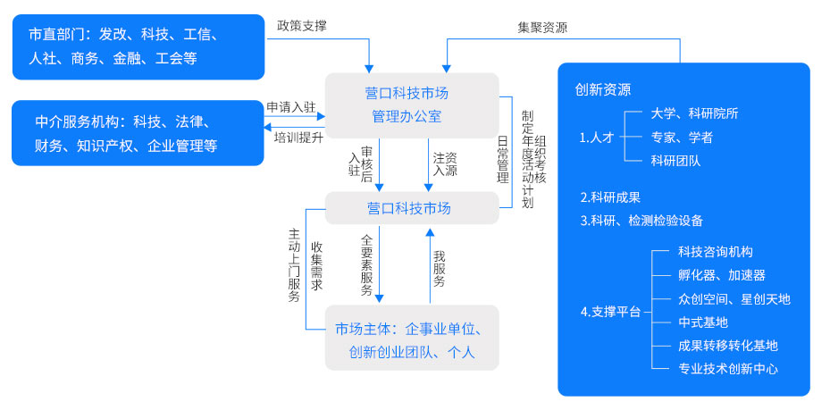 營口科技市場是根據(jù)營口市委、市政府的總體部署,由營口市科技局建設(shè),匯聚科技資源和各類市場要素的綜合服務(wù)平臺,是我市實施創(chuàng)新發(fā)展戰(zhàn)略,加快國家創(chuàng)新型城市建設(shè)的一項重要舉措。